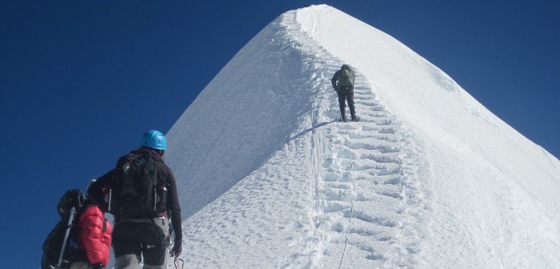 Island Peak Climbing with EBC Trek is perfect for those who love trekking and expeditions. Island Peak, also known as Imja Tse (6,189m), is a famous peak in Nepal named by Eric Shipton in 1952 because it looks like an island in a sea of ice. This peak is surrounded by the Imja, Lhotse, and Lhotse Shar glaciers. The trip starts with a thrilling flight to Lukla. The trek goes through the Dudh Koshi valley, Nanche Bazaar, Tengboche, Dingboche, and Gorak Shep, finally reaching Everest Base Camp.